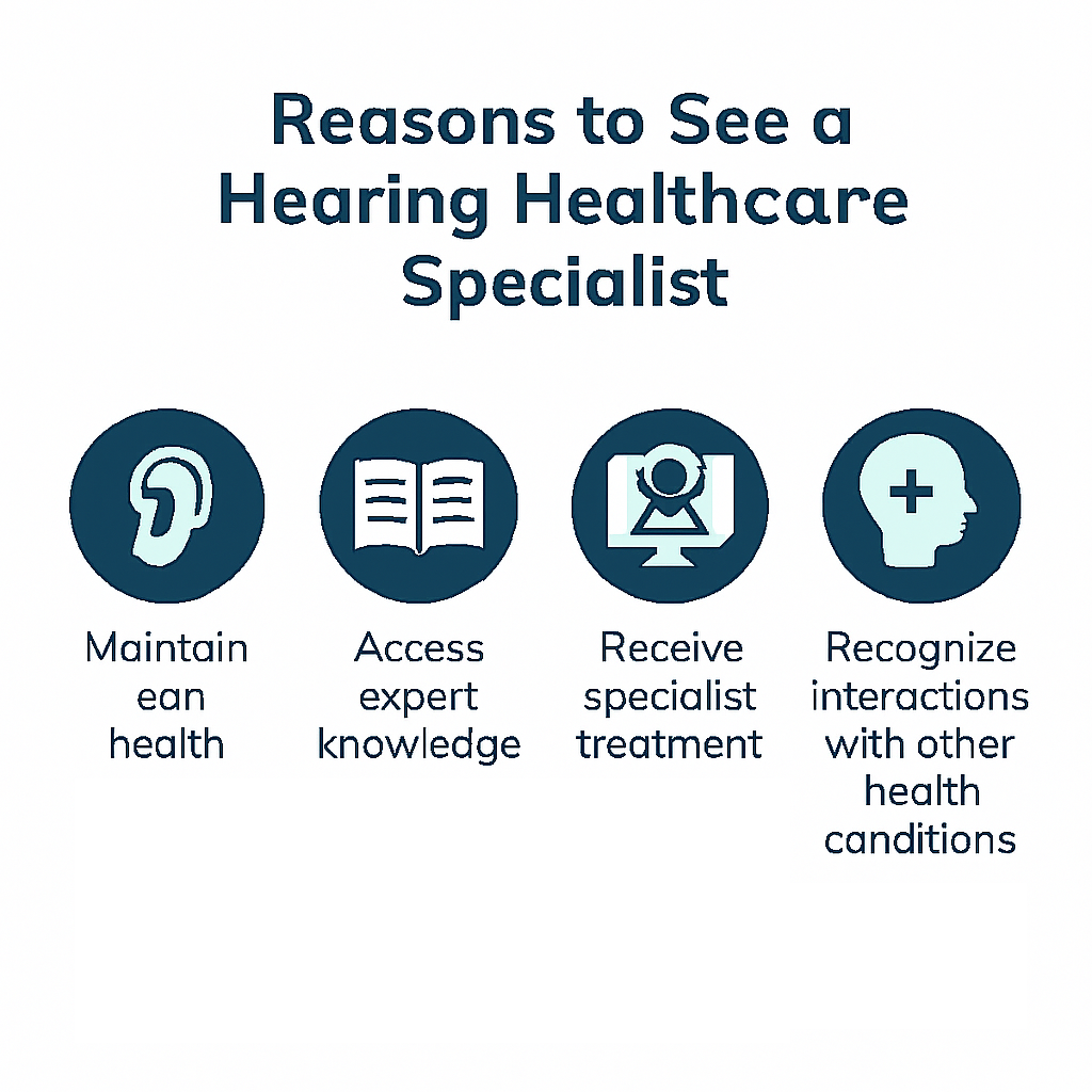 - A medical-based hearing healthcare specialist will provide you the means for direct support, as well as an established new treatment plan consisting of 3-4 appointments during the first 45-60 days of treatment. You should plan to visit your specialist four times per year for ongoing maintenance, reevaluations, and prescription updates in addition to any fun or interactive patient events they may offer.